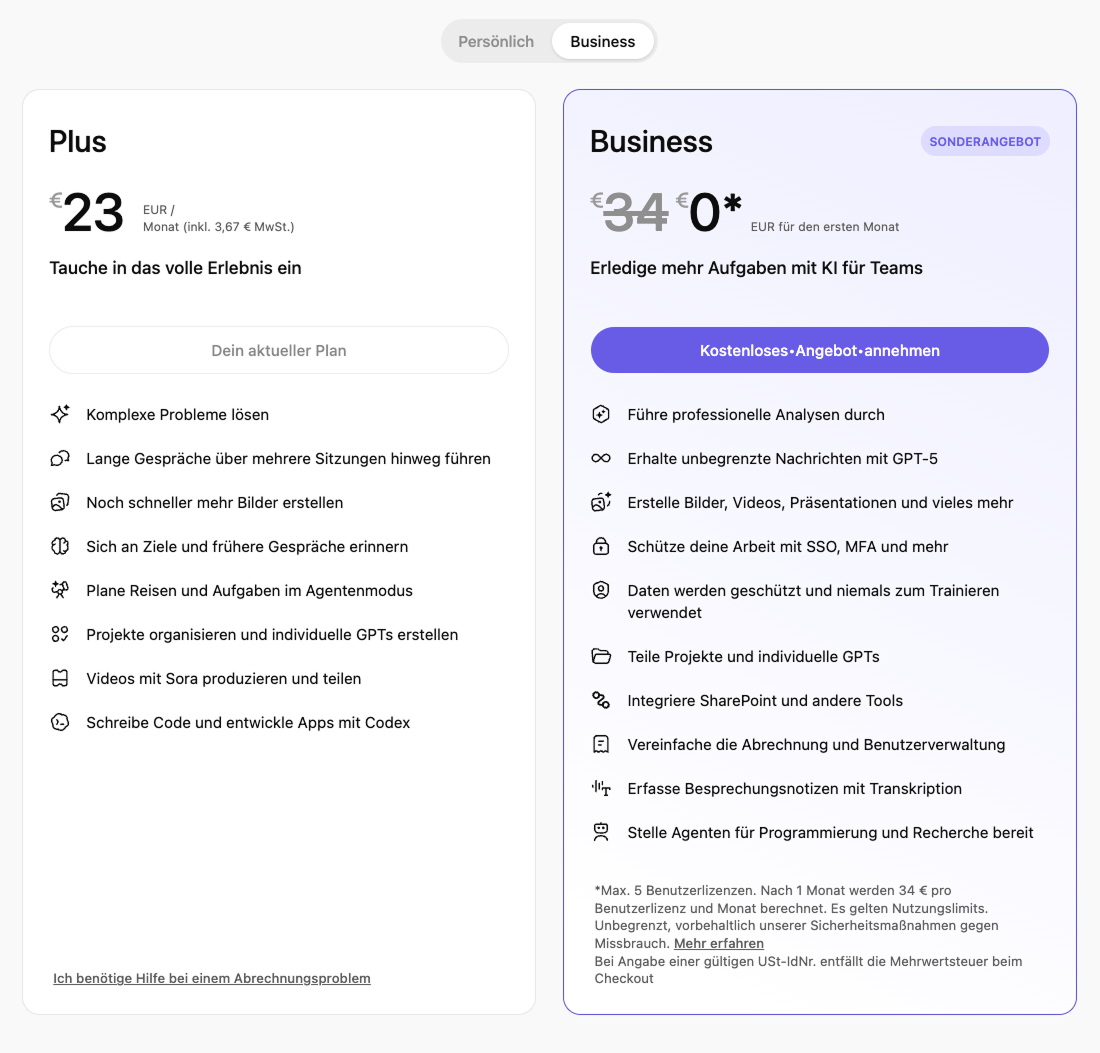 Ich nutze seit 2022 aktiv unterschiedlichste KI-Tools – ChatGPT sogar seit seiner Einführung im November 2022. Seit Sommer 2025 arbeite ich zusätzlich mit ChatGPT Pro. KI ist für mich längst ein selbstverständlicher Teil des Alltags geworden, weil sie mir viele Dinge spürbar erleichtert. Umso länger war ich bereit, für ChatGPT zu zahlen, weil ich geglaubt habe, dass ein Bezahlmodell automatisch mehr Kontrolle und besseren Datenschutz bedeutet. Heute sehe ich das deutlich kritischer.